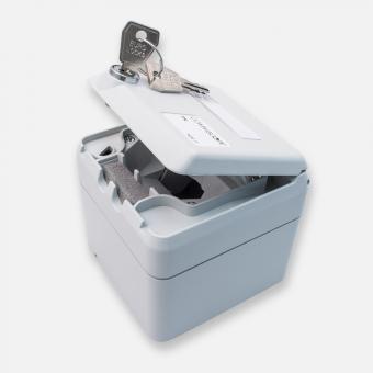 Aufputzgehäuse-Set zur Montage speziell in feuchten Räumen und im Außenbereich.Zur Aufnahme von 2 Keystone-Modulen z.B. RJ45 mit Abschliessbar mit Schlüssel.